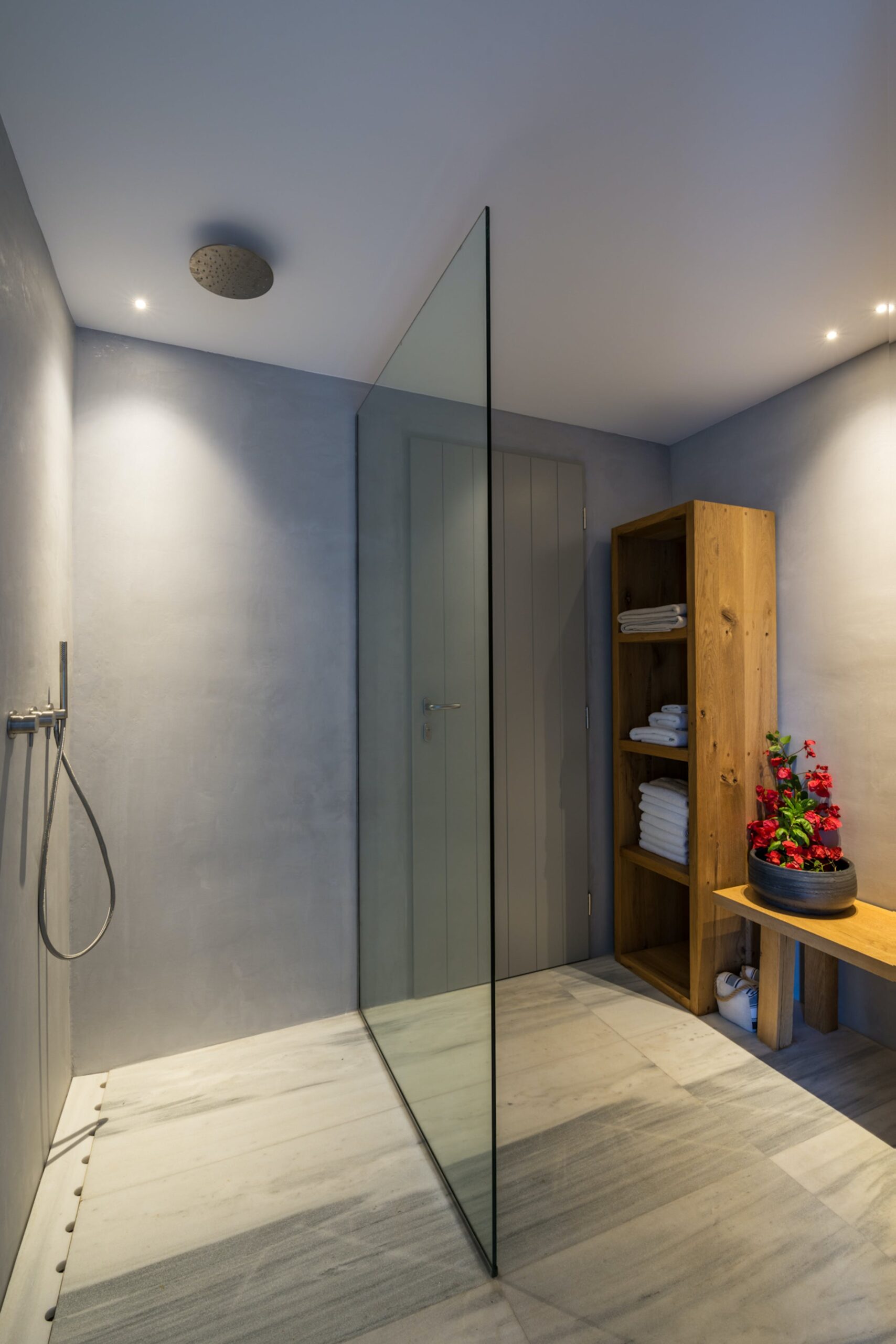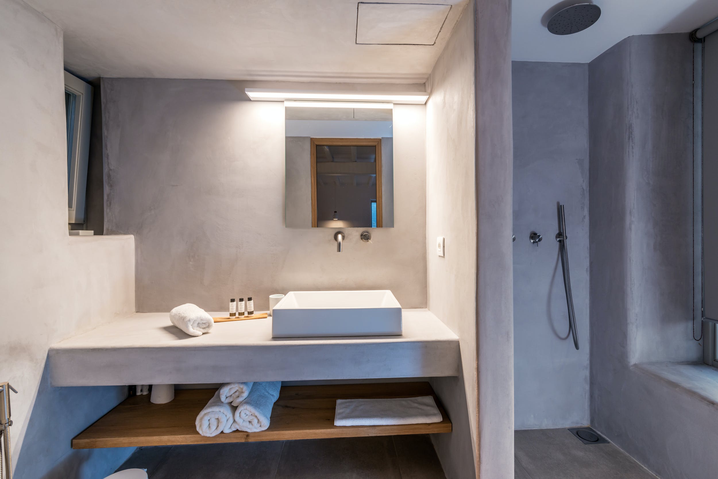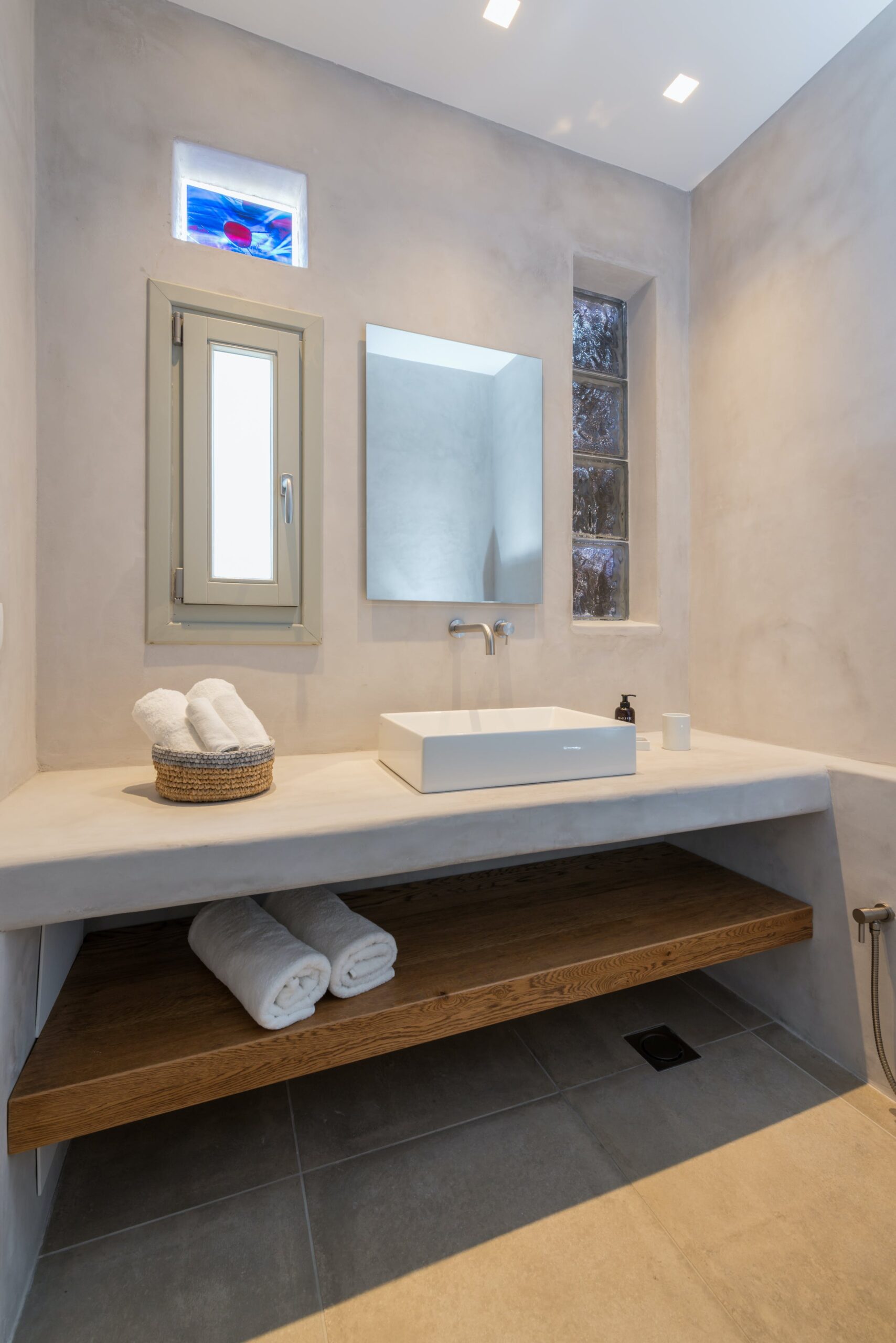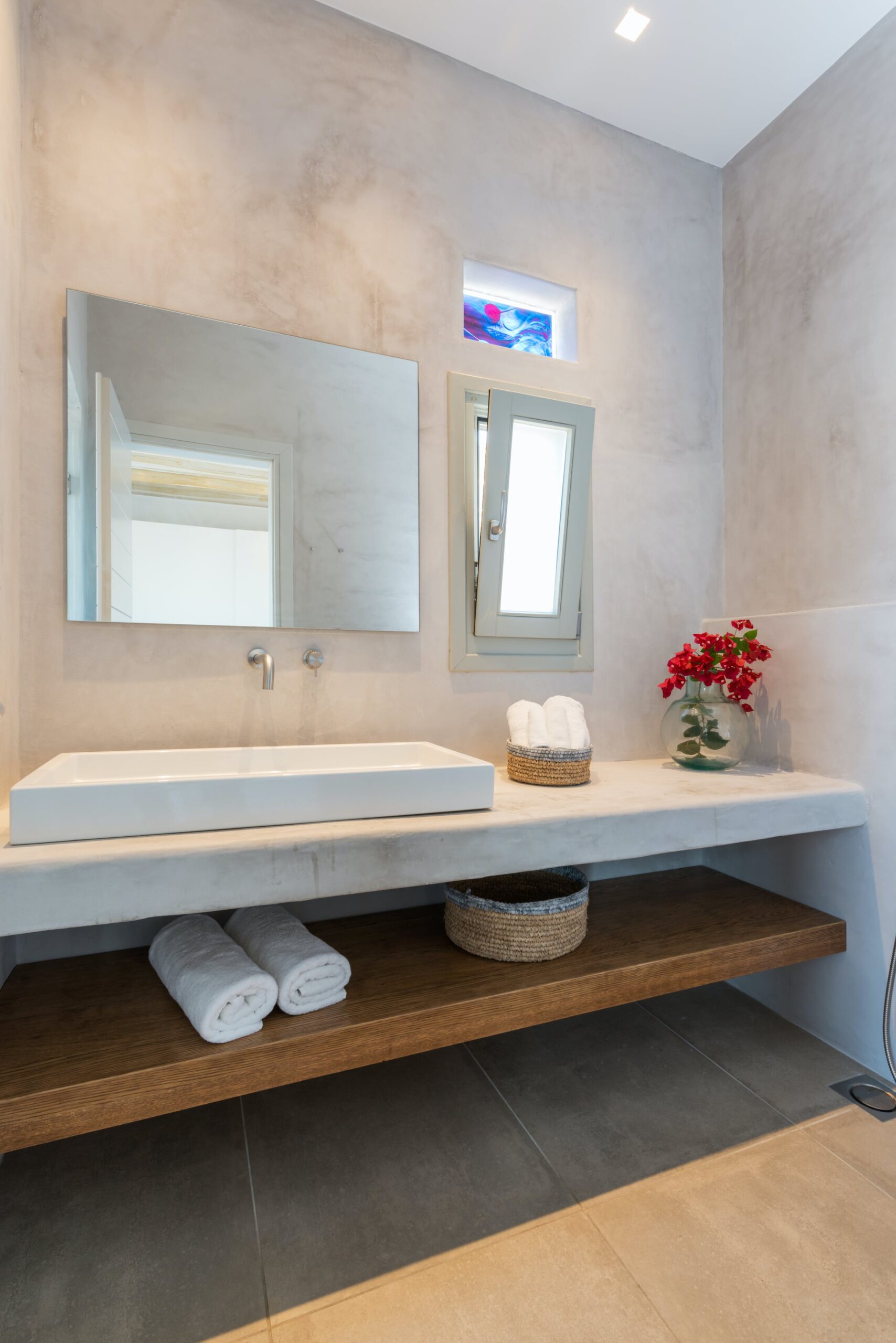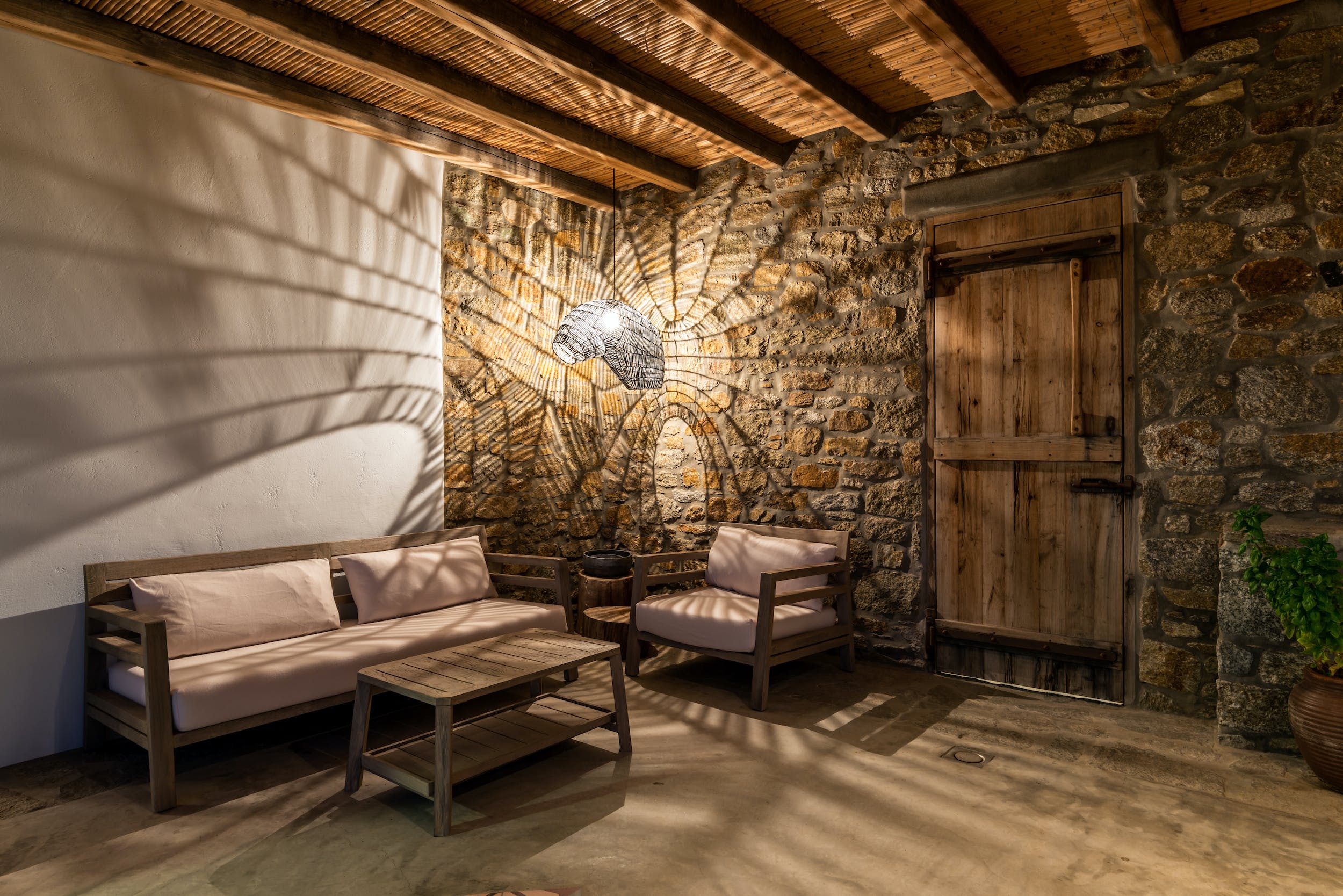 The natural stone walls and sleek white render of Villa Delano create a charming, rustic ambience which blends seamlessly with the surrounding rocky hillside. In front of the property, the beautiful infinity pool seems to hover above the headland, the shimmering Aegean waters dazzling on the horizon.