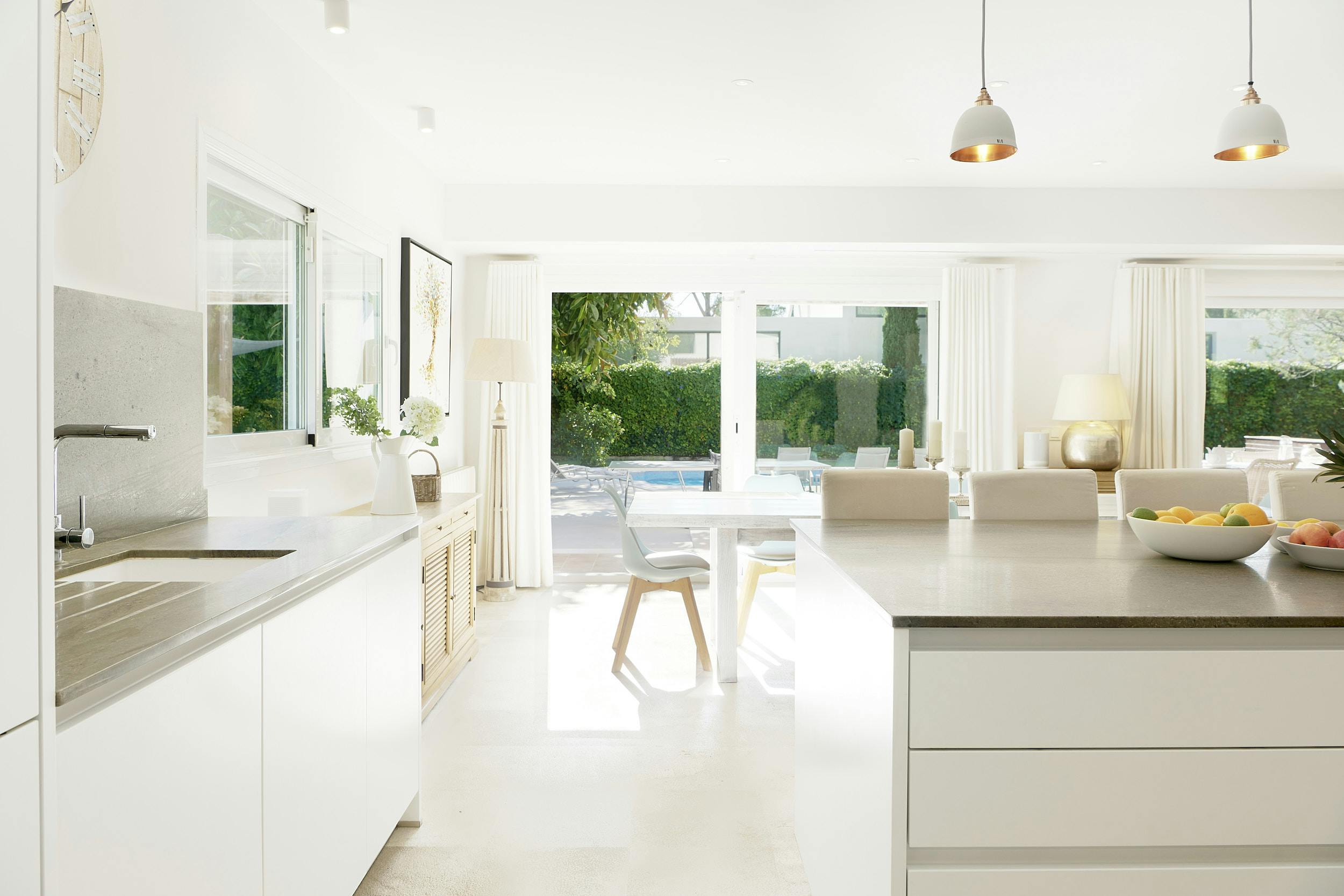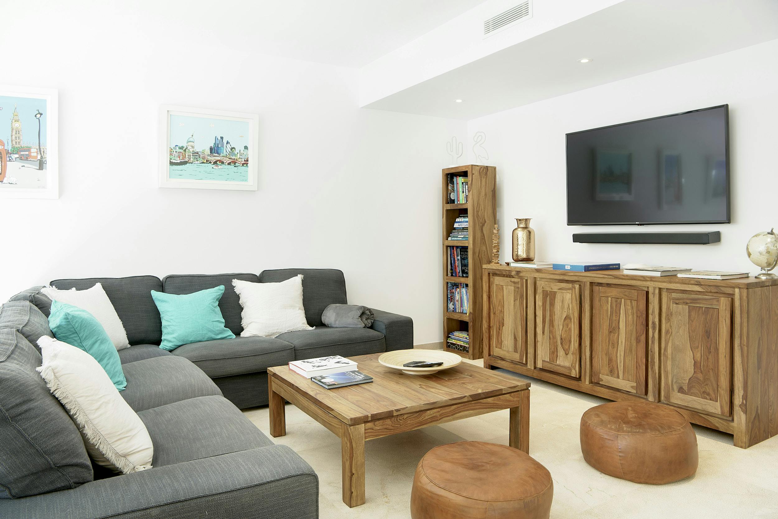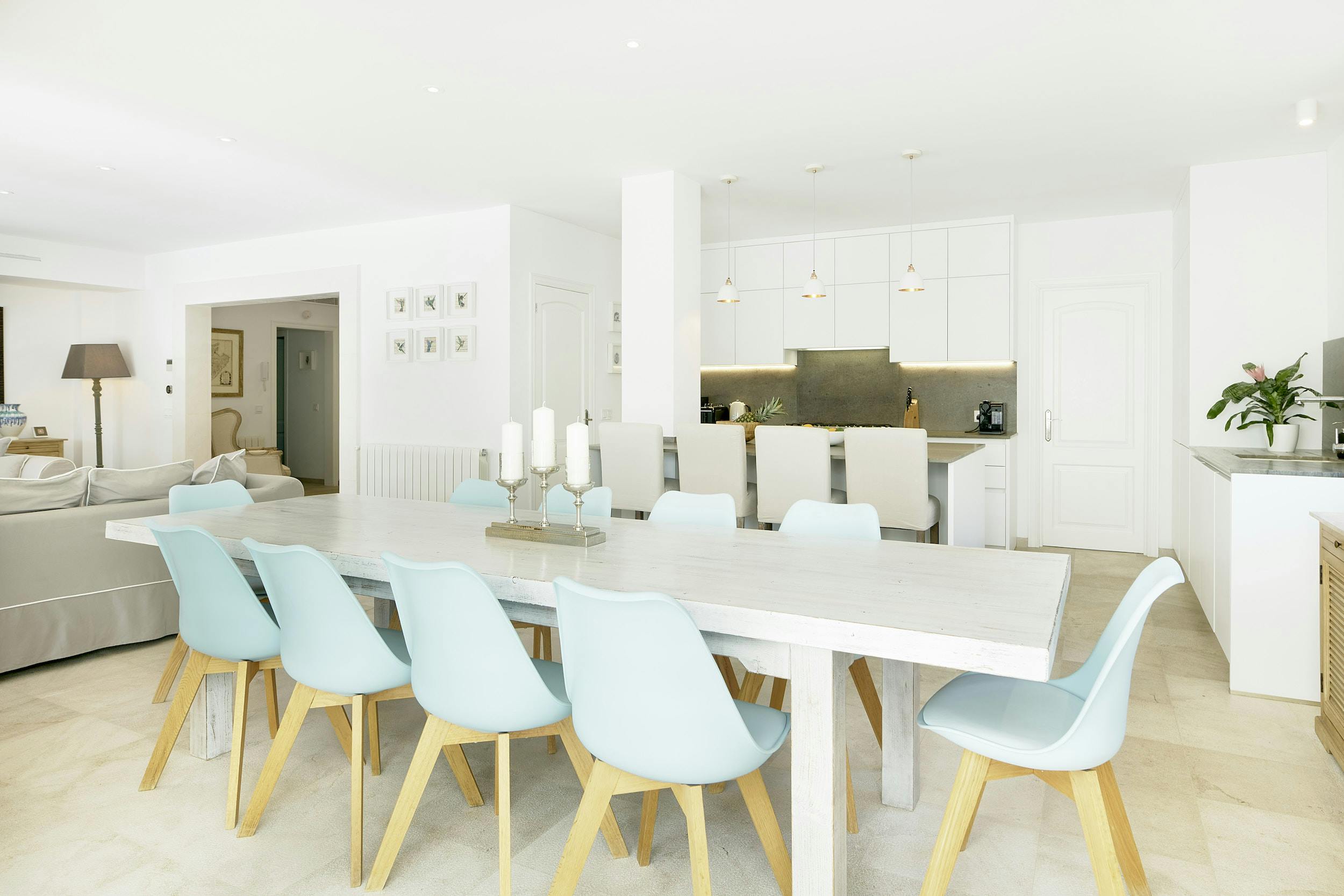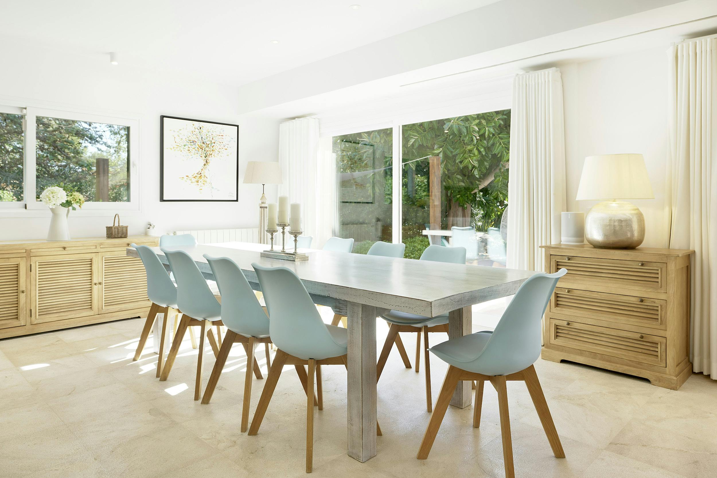 The kitchen, with large island/breakfast bar, has everything you need including a large oven, gas stove microwave, dishwasher, large fridge, Nespresso and tons of kitchen gadgets for juicing, smoothie making etc. along with a solid wood dining table that accommodates 10 for breakfast lunch and dinner.